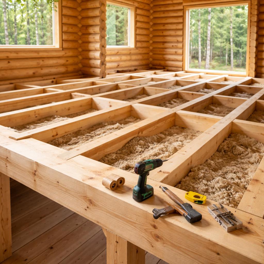 - Тепло- и звукоизоляционные материалы — могут быть размещены между балками или на потолке нижнего этажа для улучшения тепло- и звукоизоляции.