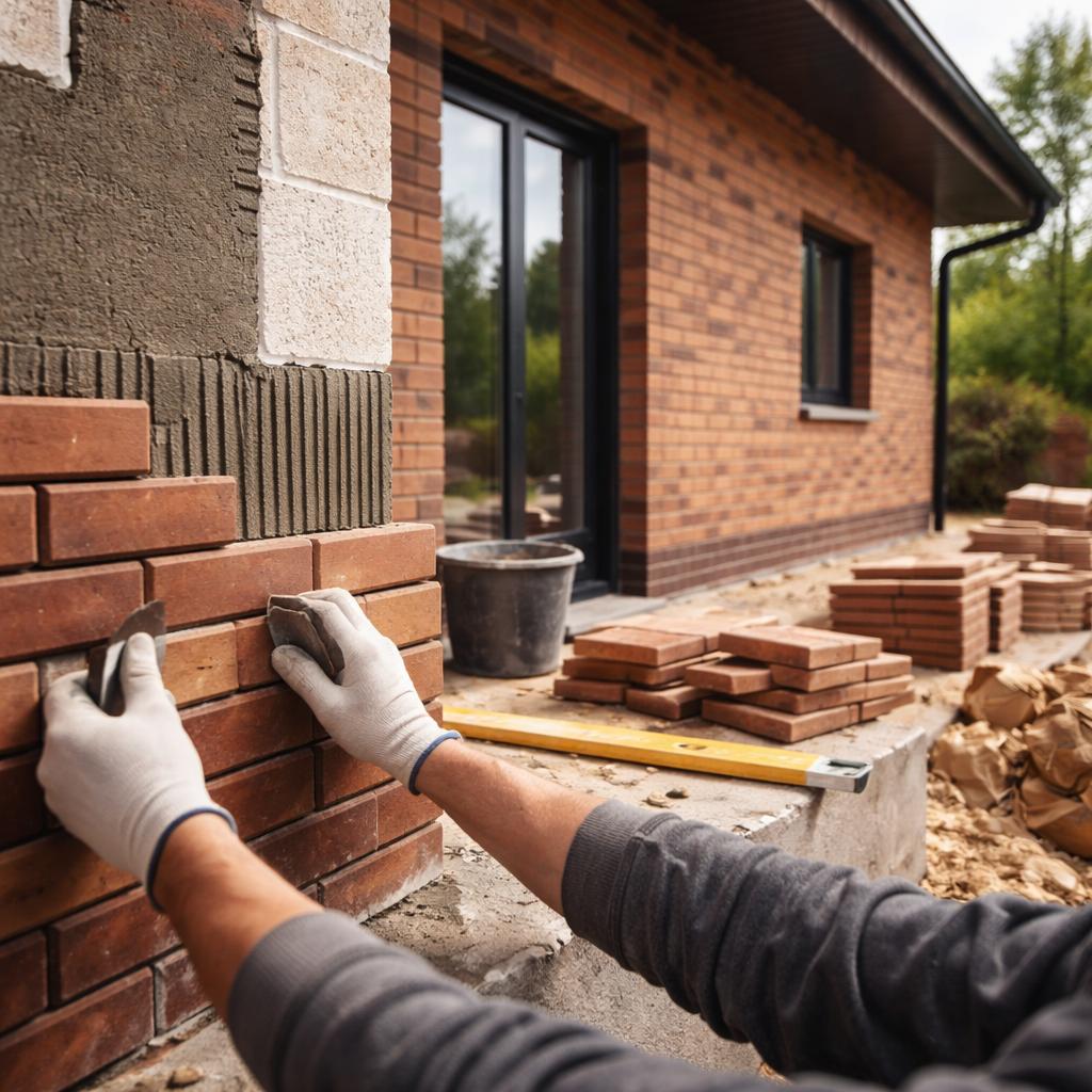 Затирка: Швы обязательно заполняются специальными фасадными затирками. Они защищают кладку от влаги и придают завершенный вид.