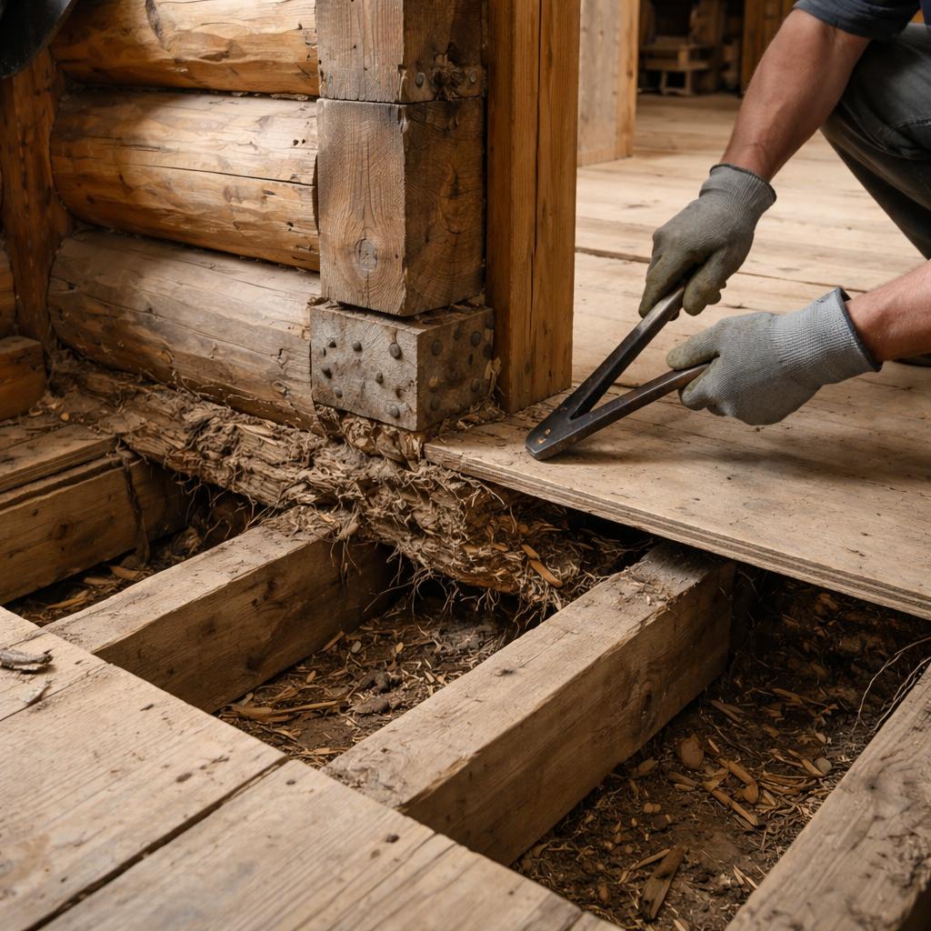 На практике потеря жёсткости заметна в трёх зонах. Первая — основание и нижний венец, где дом контактирует с фундаментом и грунтом. Вторая — углы и примыкания, которые должны работать как единое кольцо, но со временем теряют сцепление. Третья — перекрытия, особенно если они начинают работать не только на нагрузку, но и на стабилизацию стен.