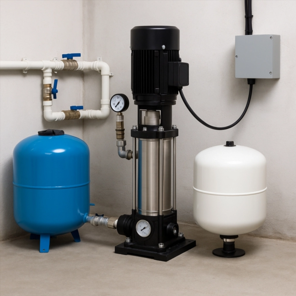 - Накопительная емкость (опционально): используется, если вода поступает не из городской сети, а из скважины или резервуара.