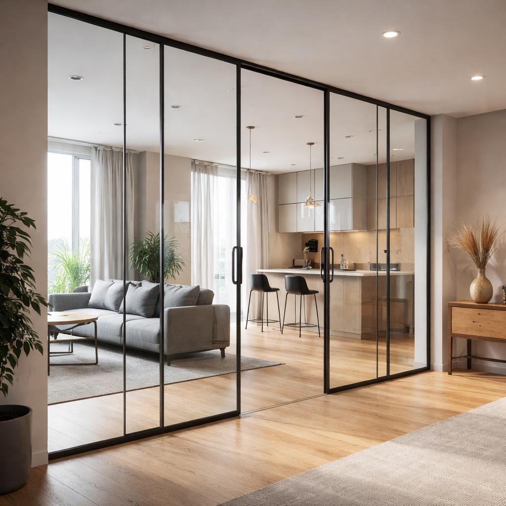 Стеклянные перегородки хорошо подходят для квартир-студий, офисов, переговорных, салонов и общественных пространств. Они эффективны там, где важно сохранить свет, визуальную связь между зонами и современный внешний вид. В помещениях с высокими требованиями к звукоизоляции чаще используются комбинированные решения.