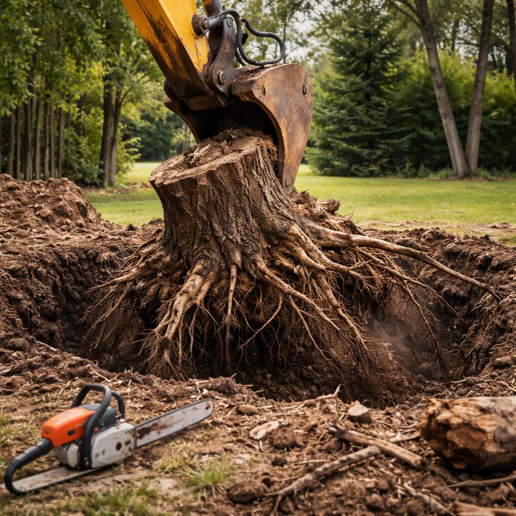 - Механическое удаление: использование специализированной техники, например, экскаваторов или корчевателей, которые способны вырывать корни из земли. Этот метод подходит для крупных деревьев с глубокими корнями и часто применяется в строительных или ландшафтных работах.